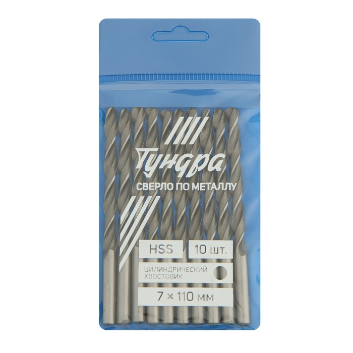 Сверло по металлу ТУНДРА, HSS, цилиндрический хвостовик, 7 х 110 мм, 10 шт.