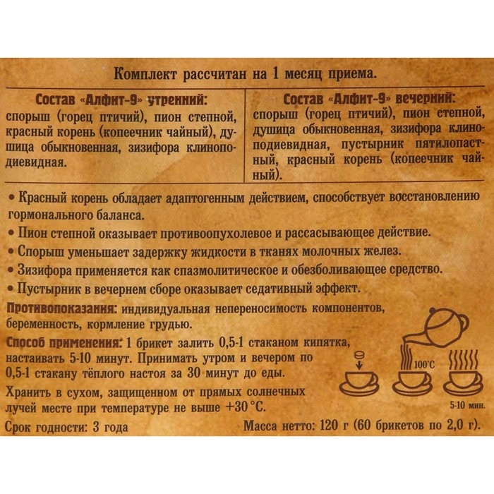 Чайный напиток Алфит-9 мастопатийный, 60 брикетов по 2 г