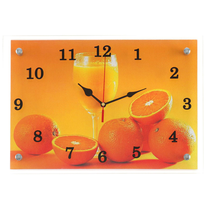 Часы-картина настенные, интерьерные "Апельсины и бокал", бесшумные, 25 х 35 см