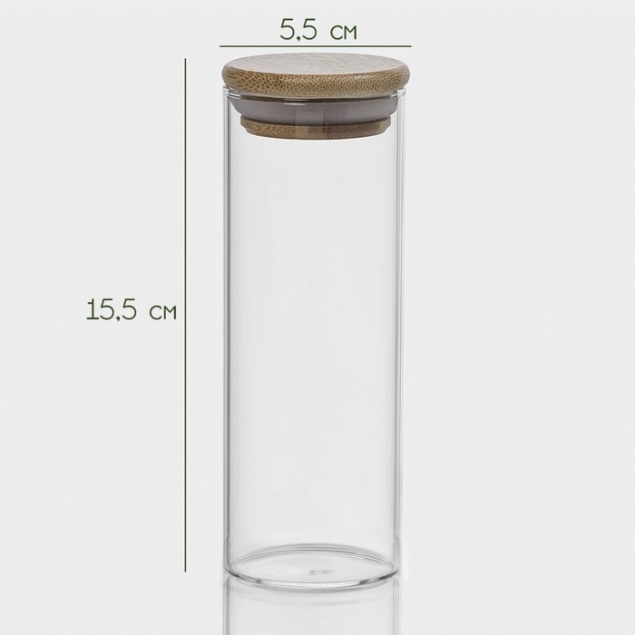 Банка стеклянная для хранения сыпучих продуктов «Эко», 300 мл, 5,5×15,5 см, с бамбуковой крышкой