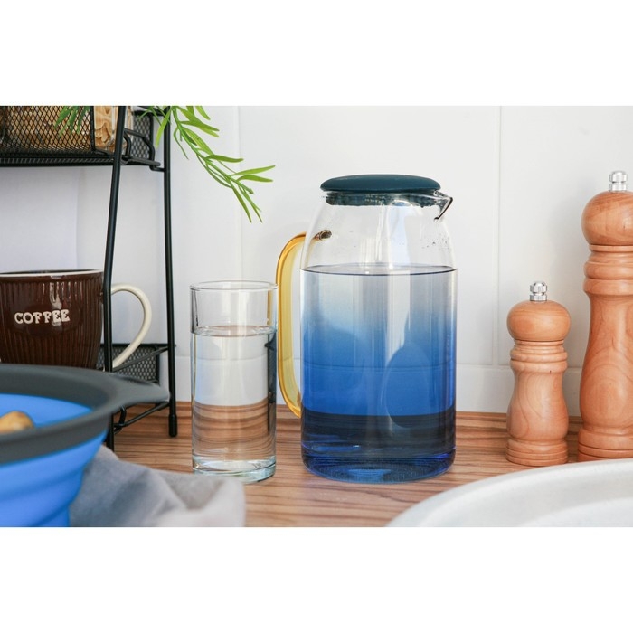 Кувшин для воды стеклянный Magistro «Модерн», 1,4 л, 16×21 см, с крышкой, цвет синий