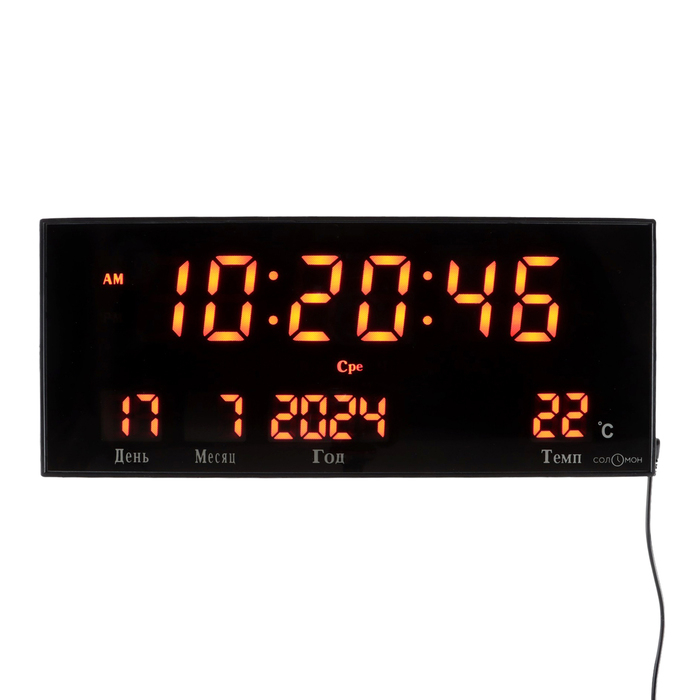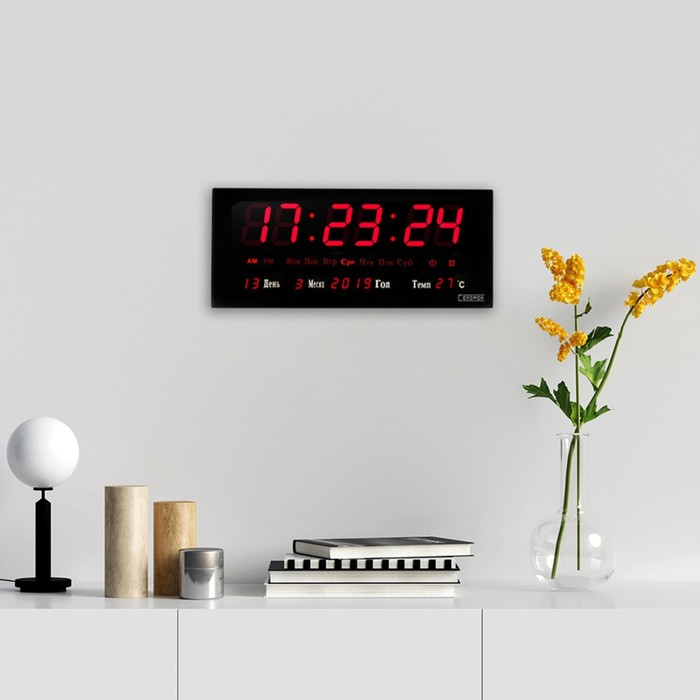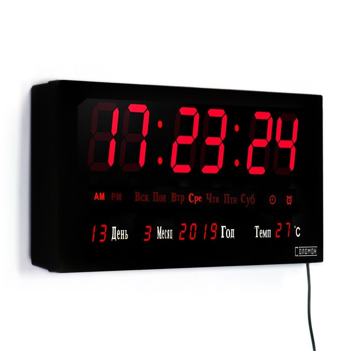 Часы электронные настенные, настольные "Соломон", с будильником, 36 х 15 х 2.8 см