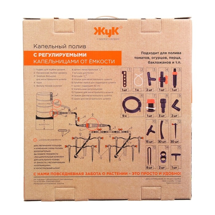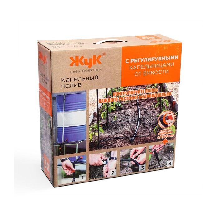 Набор капельного полива от ёмкости, с регулируемыми капельницами, 30 растений, «Жук»