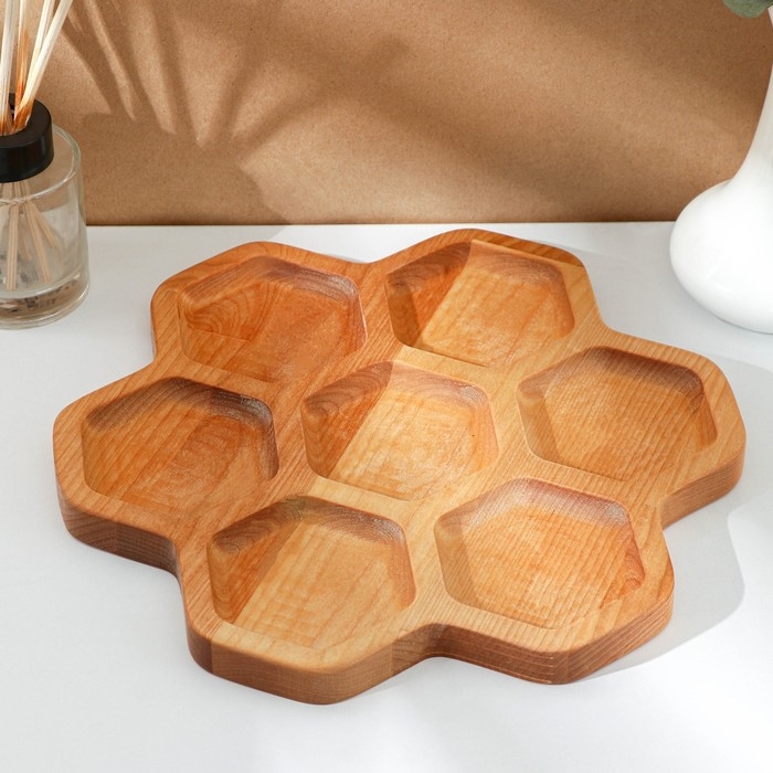 Менажница Adelica «Соты», 7 секций, d=27×1,8 см, берёза