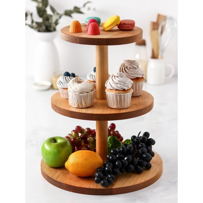 Деревянная подставка Adelica - незаменимый предмет на праздничном столе! На каждом ярусе можно эстетично расположить разные угощения, например, фрукты, десерты, закуски. Идеально подойдет на свадьбу, день рождения, фуршет, а также в качестве подарка. Подставка наполнит любой интерьер уютом и красотой. Позвольте себе самое лучшее!