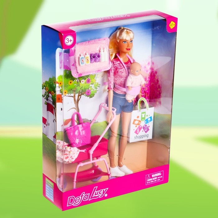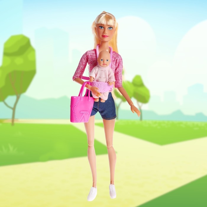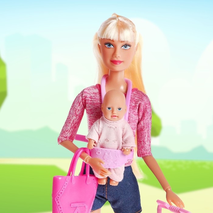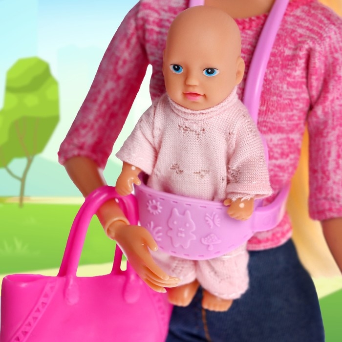 Кукла модель «Молодая мама», с пупсом, с аксессуарами, цвет розовый