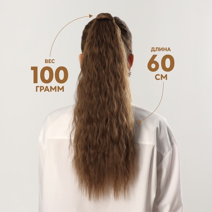 Хвост накладной, волнистый волос, на резинке, 60 см, 100 гр, цвет русый(#SHT8A)