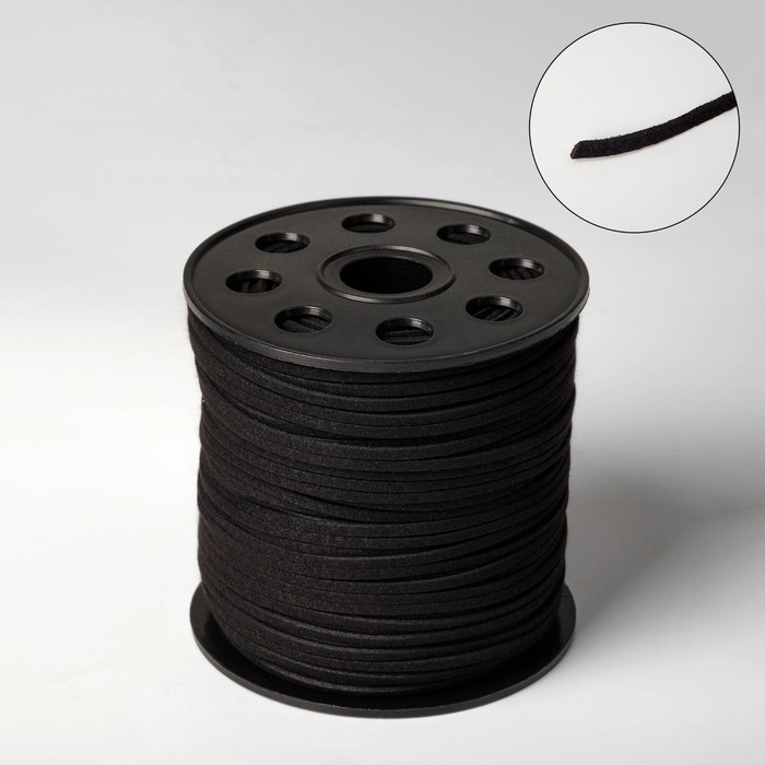 Шнур из искусственной замши на бобине, L= 90м, ширина 2,3мм, цвет чёрный