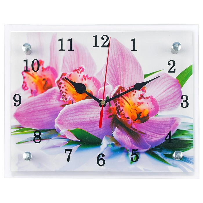 Часы-картина настенные, интерьерные "Орхидея", бесшумные, 25 х 20 см