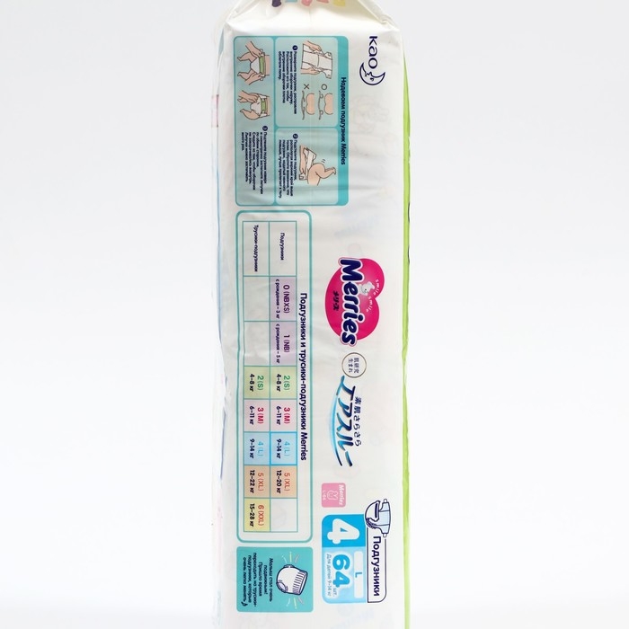 Подгузники для детей Merries, размер L - 9-14 кг, в упаковке 64 шт.