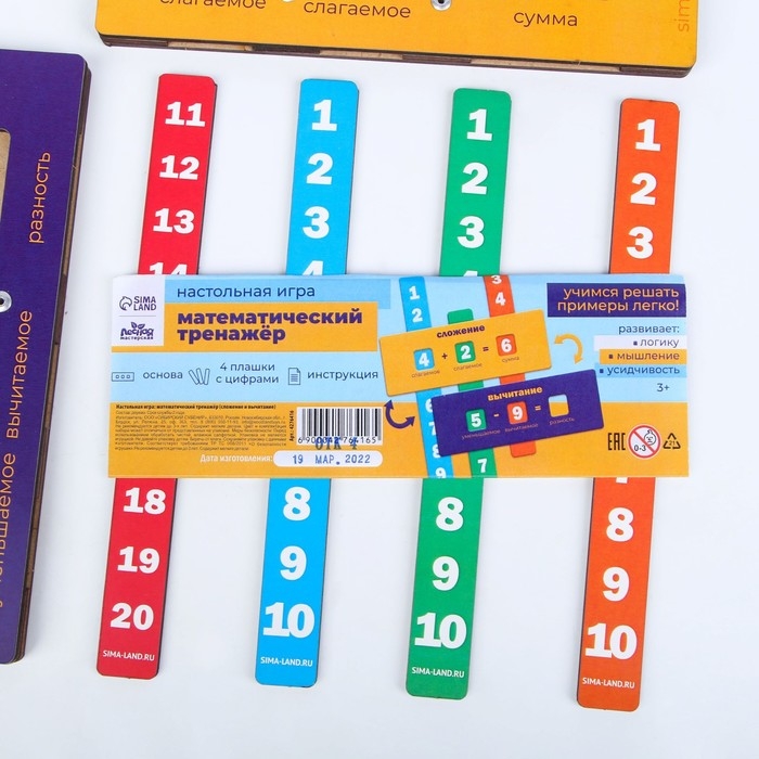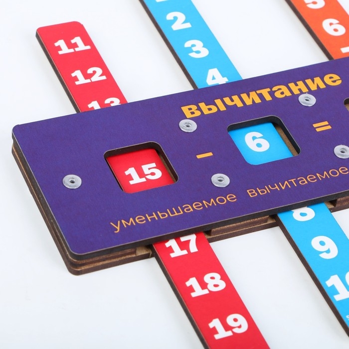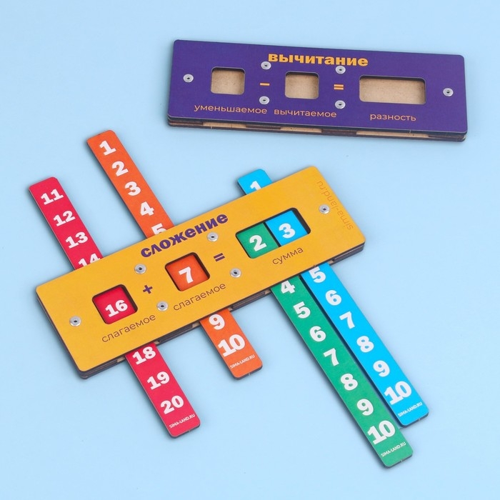 С тренажёром малыш быстро научится решать лёгкие математические примеры на сложение и вычитание.
