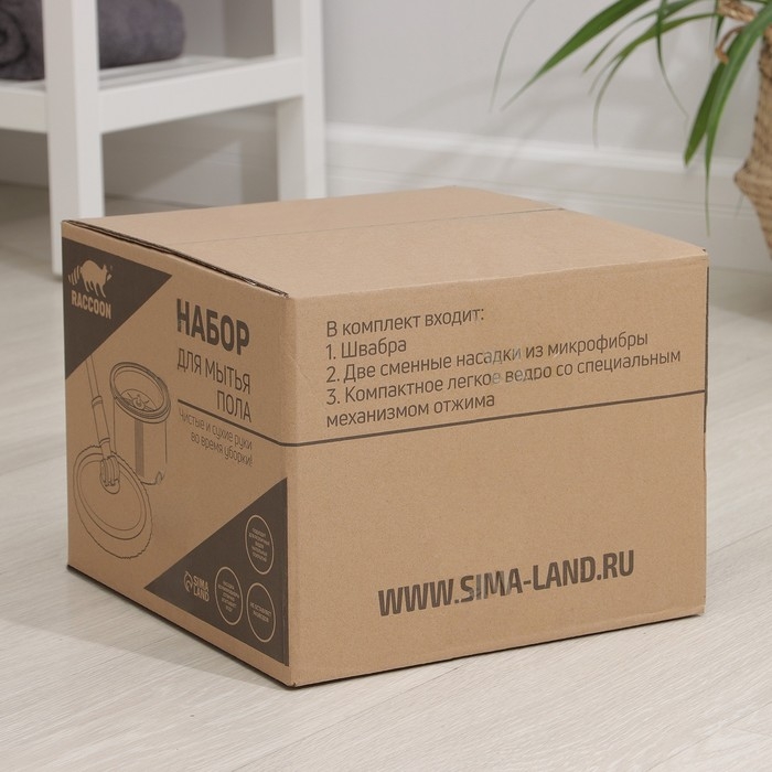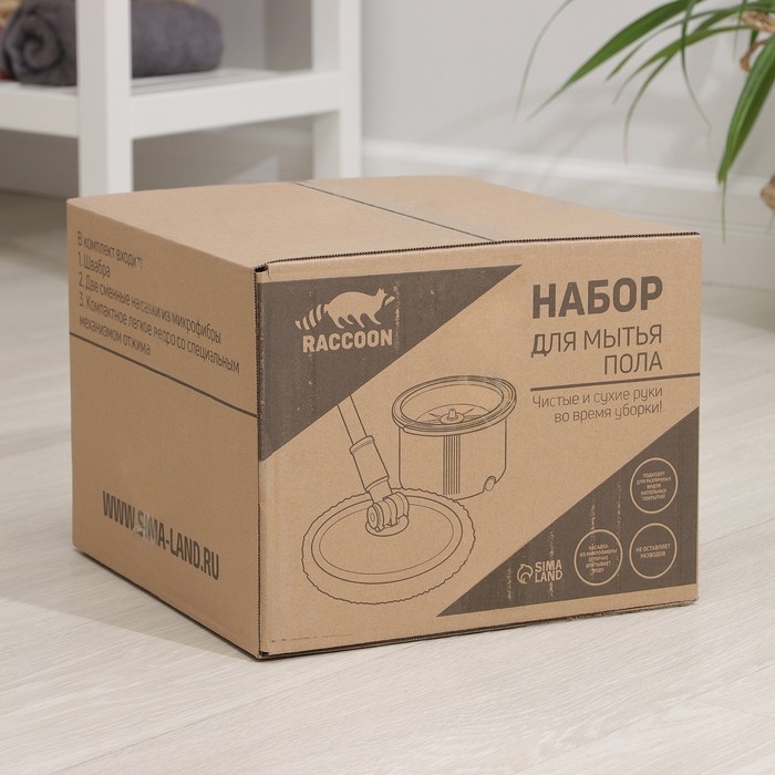 Швабра с отжимом и ведро Raccoon: швабра 32×5×132 см, ведро для полоскания и отжима 14 л