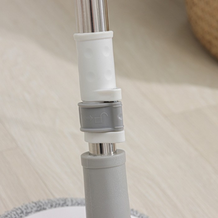 Подвижная часть ручки швабры легко опускается и обеспечивает вращение насадки. Вы без труда можете контролировать уровень влажности моющей части за счет количества вращений.