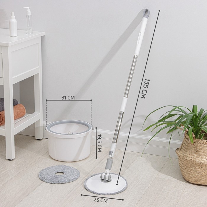 Швабра с отжимом и ведром Raccoon: ведро с подачей воды 19,5×31 см, швабра 23×135 см, насадка из микрофибры d=23 см
