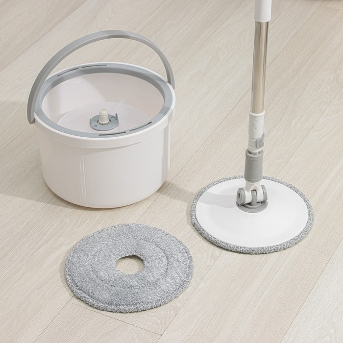 Швабра с отжимом и ведро Доляна: швабра плоская, ведро с двумя отсеками, 8 л, дополнительная насадка