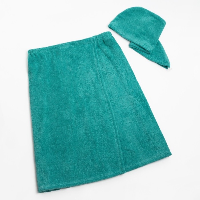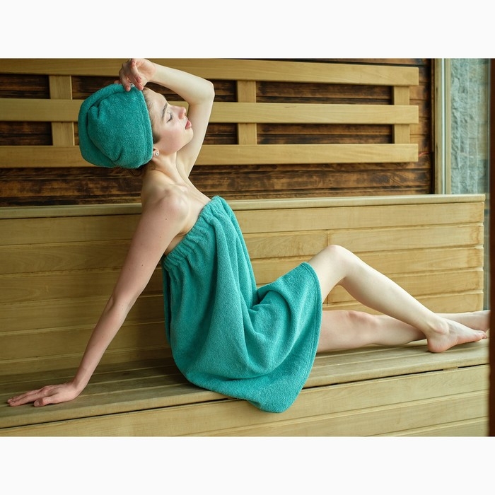 Набор для сауны Экономь и Я:полотенце-парео 68*150см+чалма, цв.голубая трава,100%хл, 320 г/м