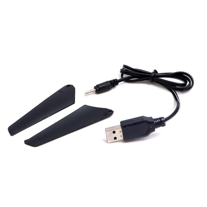 - Вертолёт работает от аккумулятора и заряжается от USB.