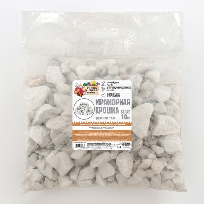 Мраморная крошка "Рецепты Дедушки Никиты", отборная, белая, фр 20-40 мм , 10 кг
