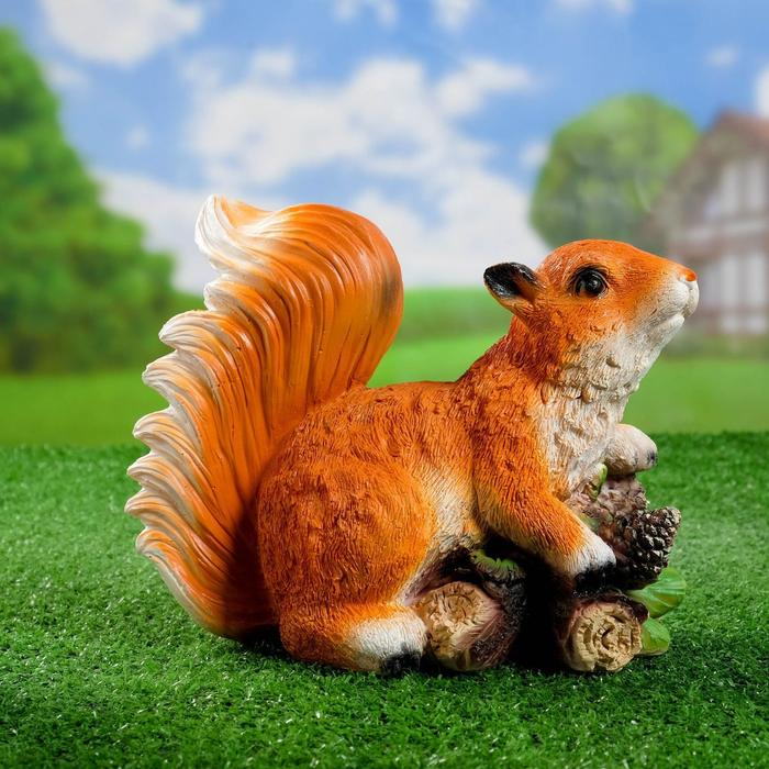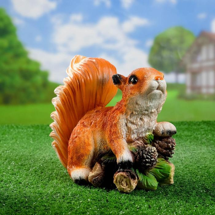 Садовая фигура "Белка на ветке с шишками" 14х24х21см
