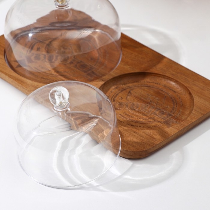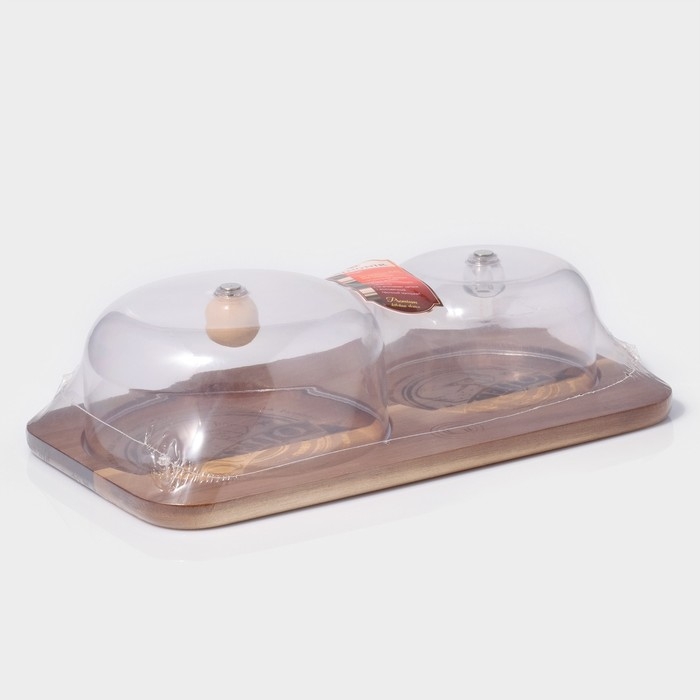 Блюдо для подачи с двумя крышками, 34×20×12 см, акация