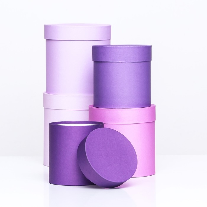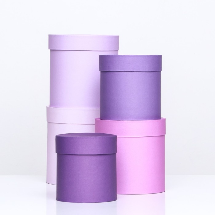 Набор круглых коробок 5 в 1 "Лаванда" 20 х 20 - 15 х 15 х 15 см