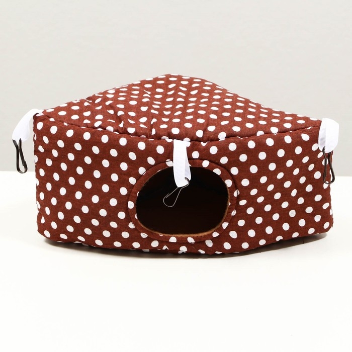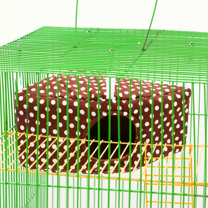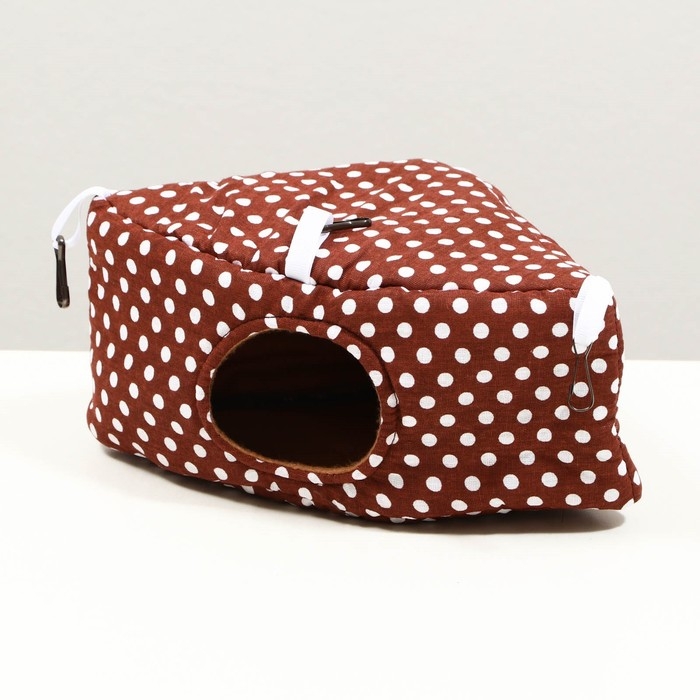 Домик для грызунов предназначен для крыс, хомяков, песчанок, мышей. Изготовлен из прочной мебельной ткани, устойчивой к когтям и зубам. Практичные ткани позволят поддерживать гигиену в жилье вашего питомца, после стирки все останется в прежнем виде! Крепится домик лежак к верху клетки.