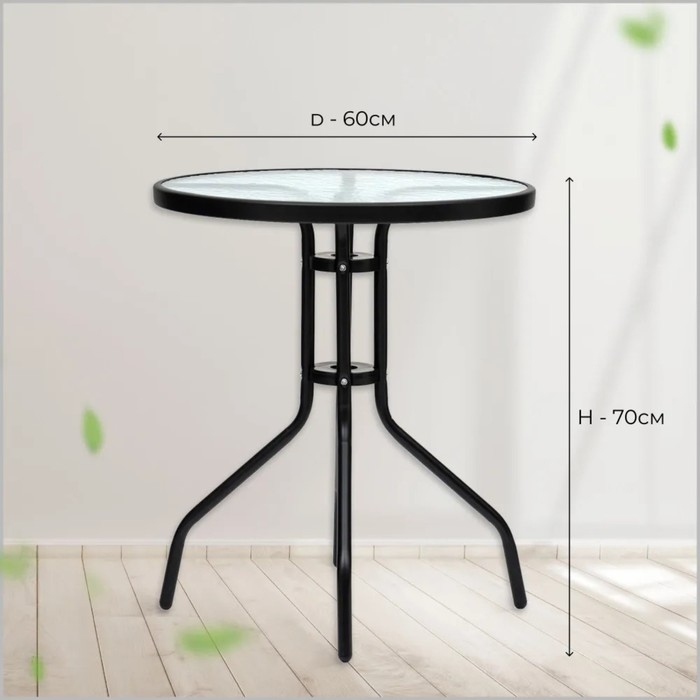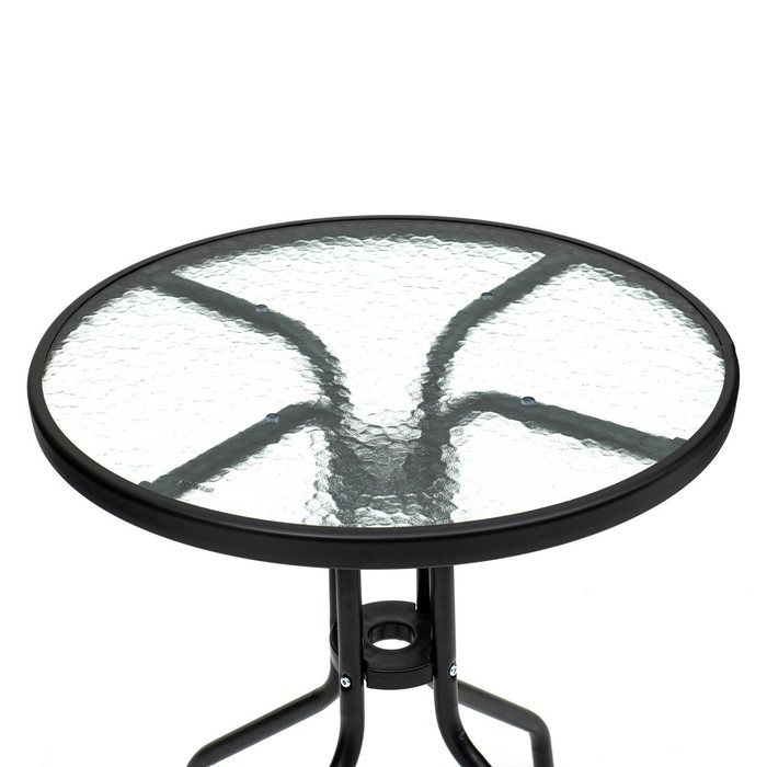 Стол садовый 60 х 70 см, цвет черный, столешница стекло