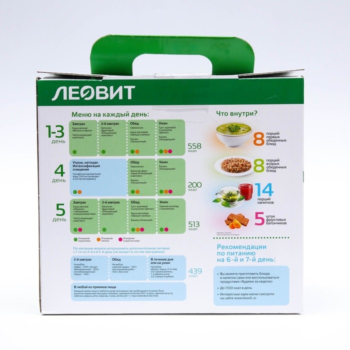 - Рекомендуем проводить «очищение» организма по схеме 5 дней + 2 дня:
