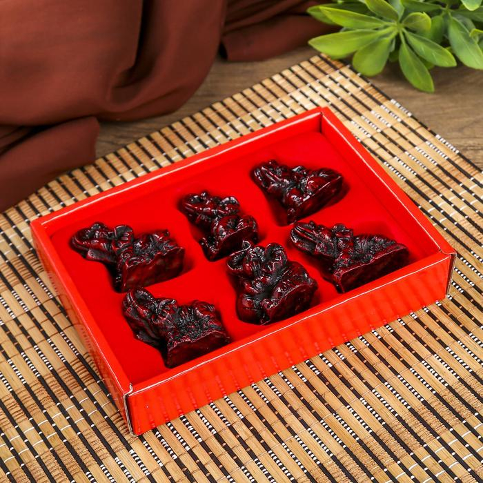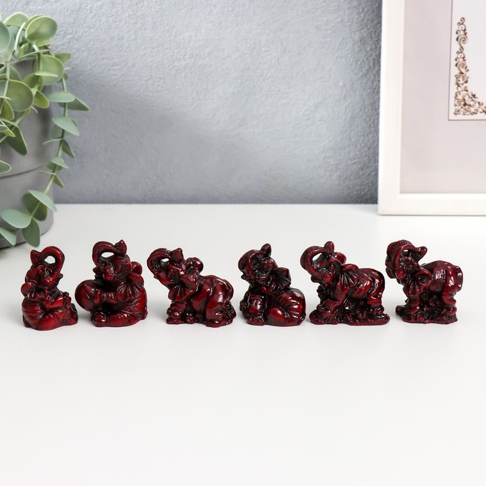 Нэцкэ "Слоны счастья" тёмно-красные набор 6 штук 4,5х3х4 см