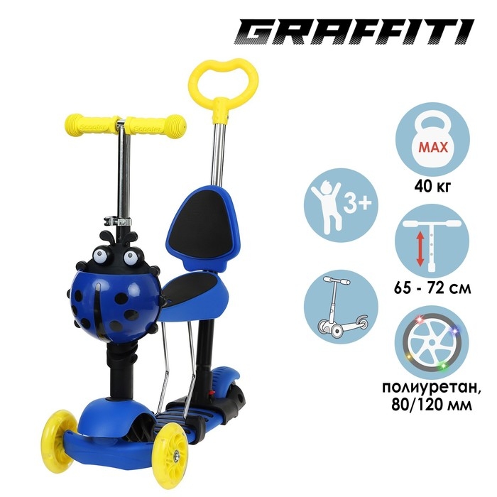 Самокат 5 в 1 GRAFFITI, колёса световые PU 120/80 мм