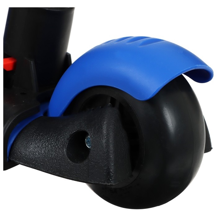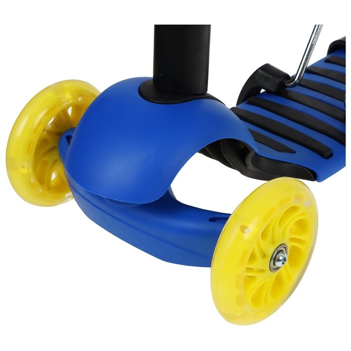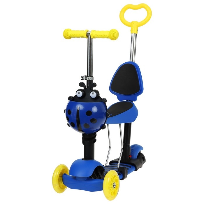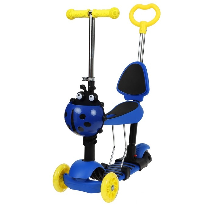 При установленном сиденье – это беговел, благодаря такой функции ребёнок развивает навыки координации и укрепляет мышцы ног. Если сиденье снято – это полноценный самокат, который позволяет прорабатывать мышцы верхних, нижних конечностей, мышц спины и брюшной полости.