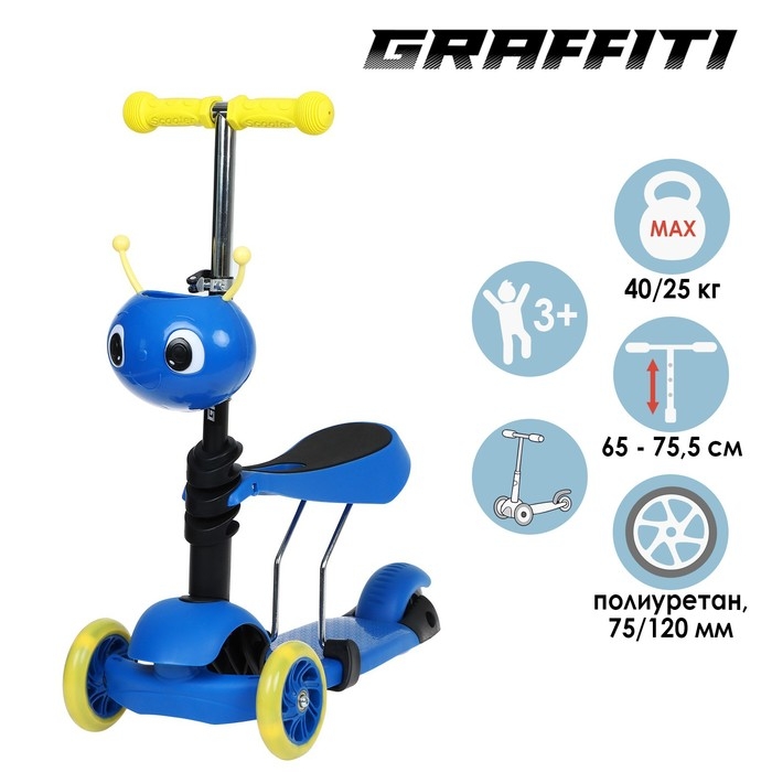 Самокат 2 в 1 GRAFFITI, с корзинкой, колёса PU 120/75 мм, цвет синий