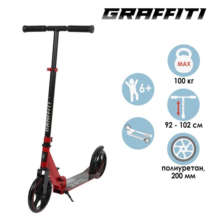 Самокат городской GRAFFITI, складной, колёса PU 200, 86A, ABEC 9, подножка, цвет красный