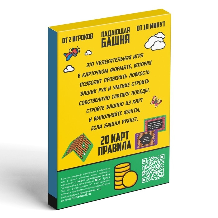 - «Падающая башня». Увлекательная игра в карточном формате, которая позволит проверить ловкость рук и умение строить собственную тактику победы. Стройте башню из карт и выполняйте забавные фанты, если башня рухнет.