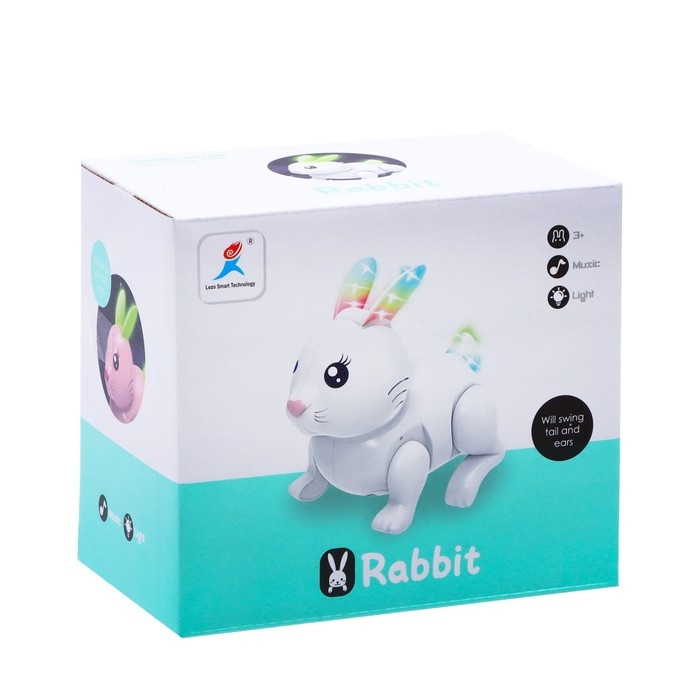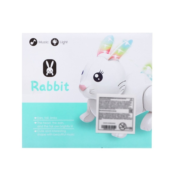Кролик «Белый», свет и звук, работает от батареек, цвет белый