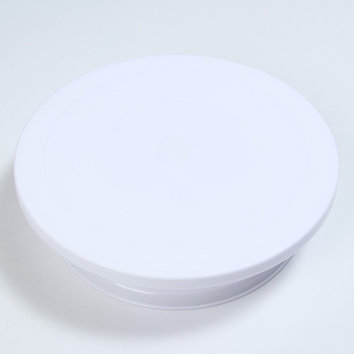 Устойчивая тортовница изготовлена из качественного пластика, что обезопасит вас от падения или сползания вашего кондитерского изделия. Блюдо крутящееся поможет вам сделать равномерно покрытие, заливать торт ровным слоем глазури, обтягивать коржи мастикой легко и без труда.