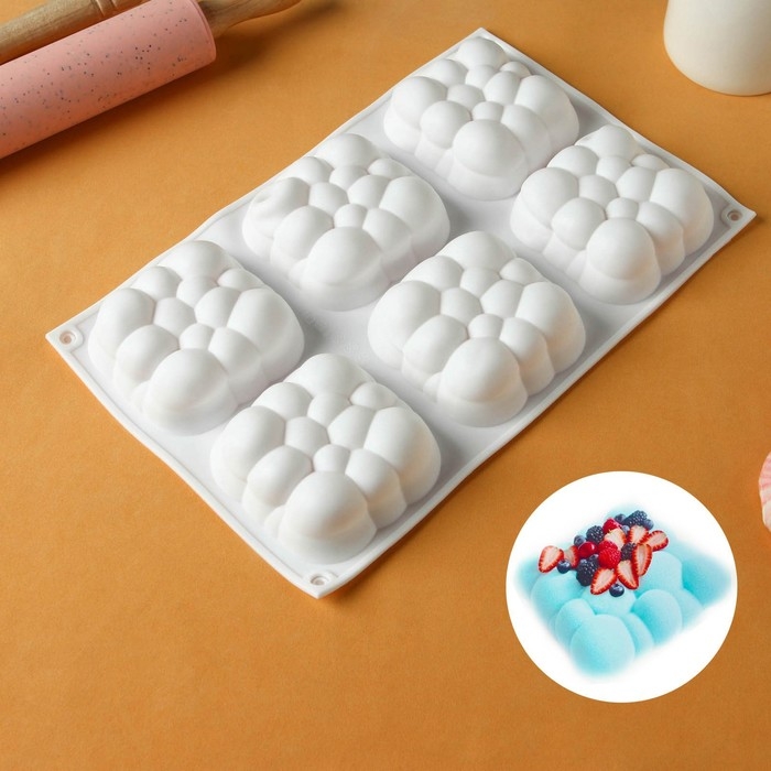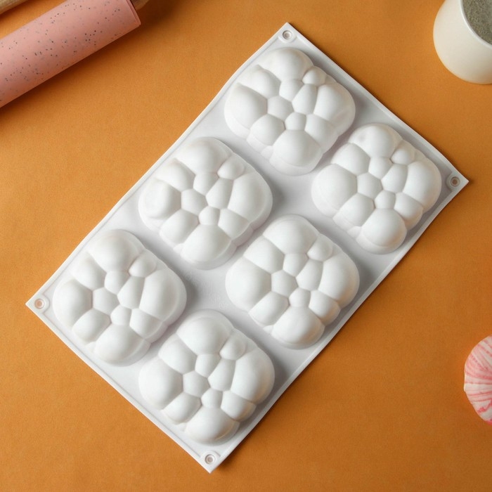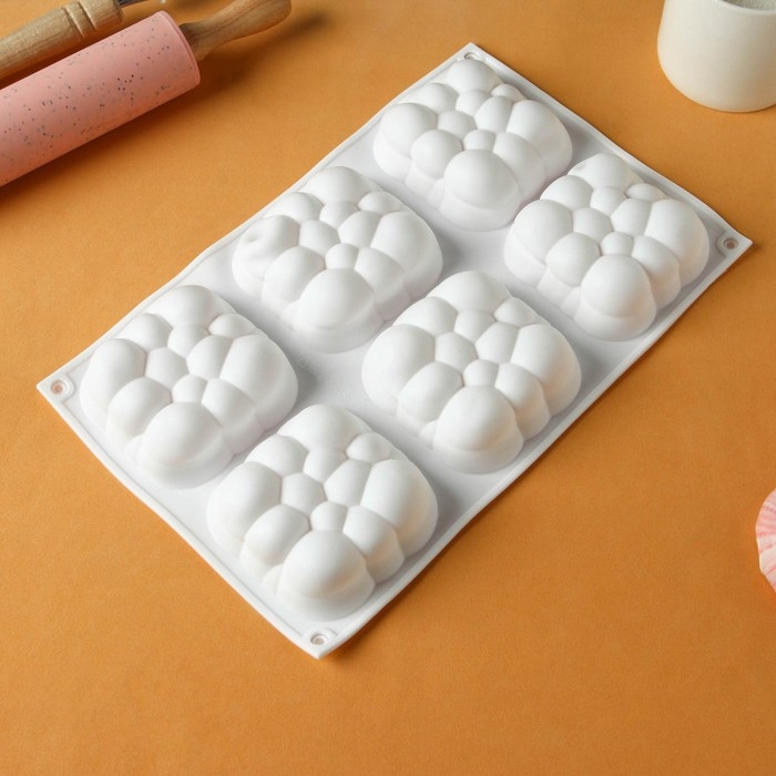 Форма для выпечки и муссовых десертов KONFINETTA «Облачко», силикон, 30×18,8×3,5 см, 6 ячеек (7,4×7,4 см), цвет белый