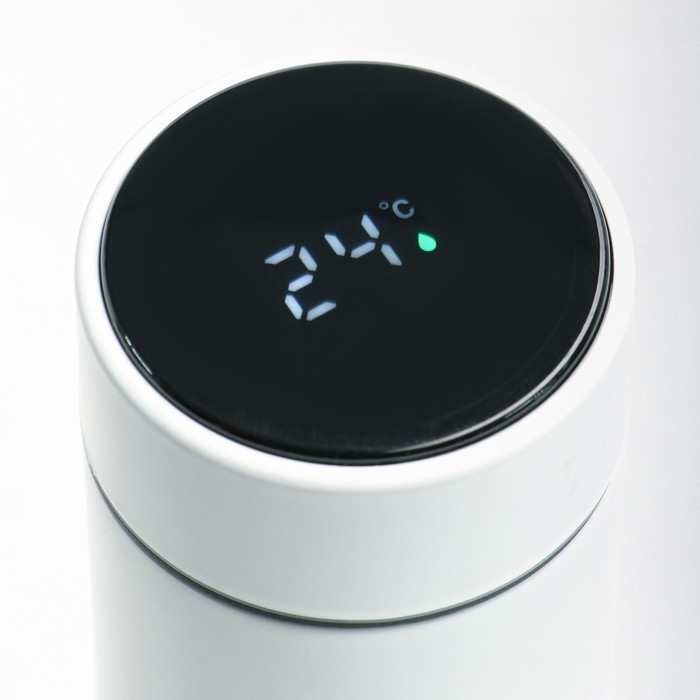 - Имеет датчик температуры жидкости (отображаемая температура — температура напитка в термосе).
