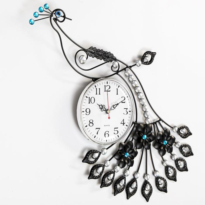 Часы настенные, серия: Ажур,"Павлин со стразами", плавный ход, d-15 см, 46 х 47.5 см