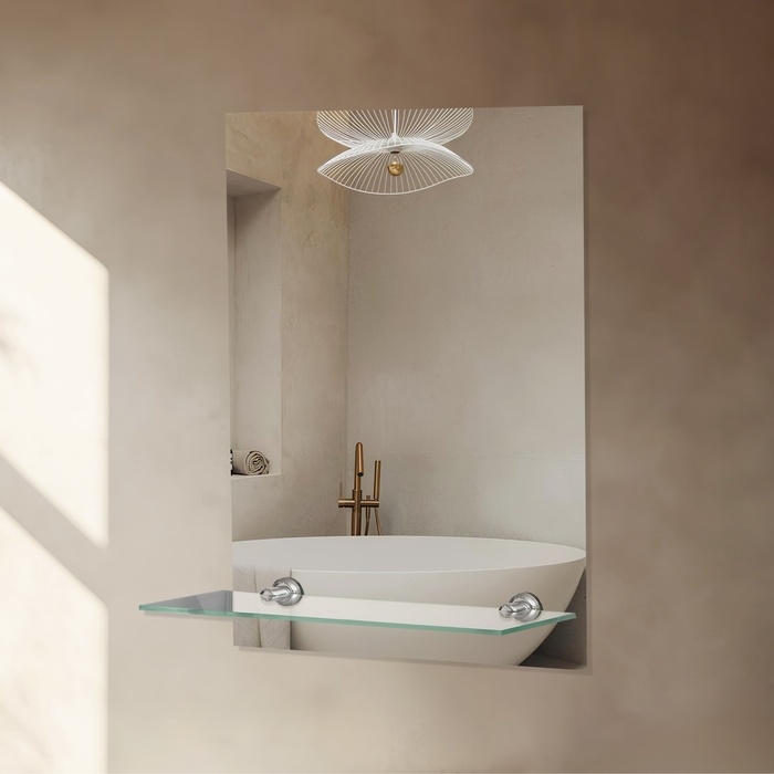 Зеркало с полкой не только выполняет свою главную функцию, но и имеет удобную полку для хранения различных предметов.