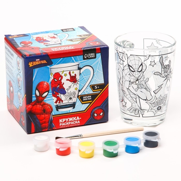 Роспись стеклянной кружки, 300 мл "Супер-мен", Человек-Паук