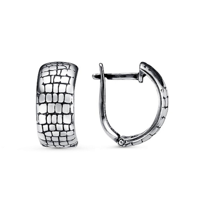 Серьги «Рептилия» пластина, посеребрение с оксидированием