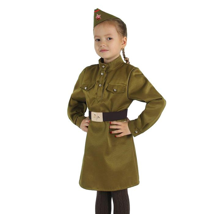 Карнавальный костюм для девочки "Военный", платье, ремень, пилотка, рост 110-120 см