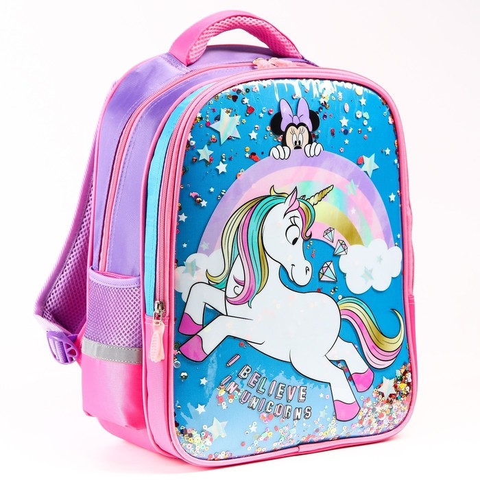 Рюкзак школьный, 39 см х 30 см х 14 см "Мышка", Минни и единорог