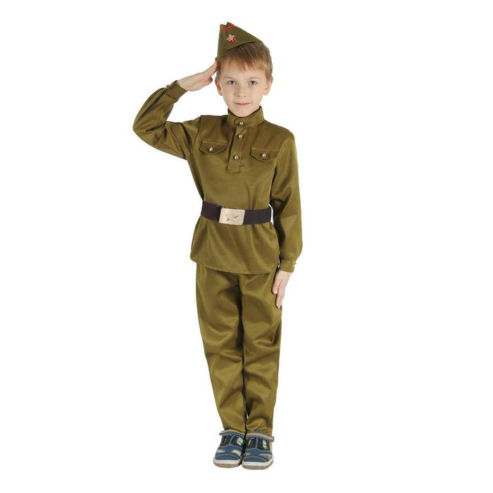 Детский карнавальный костюм "Военный", брюки, гимнастёрка, ремень, пилотка, р-р 30-32, рост 120-130 см