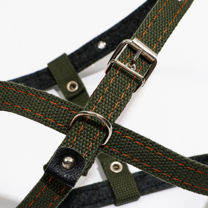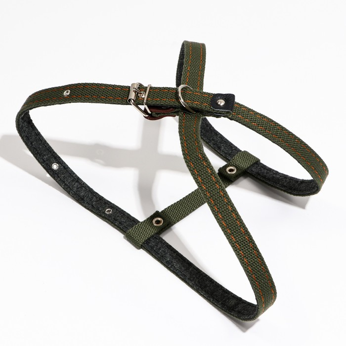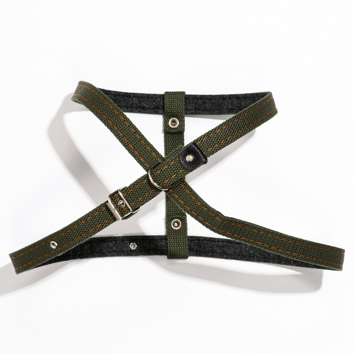 Шлейка брезентовая на фетре, восьмерка, регулируемая,2 см,ОШ 36-56см,ОГ 54-62 см, т. зелёная