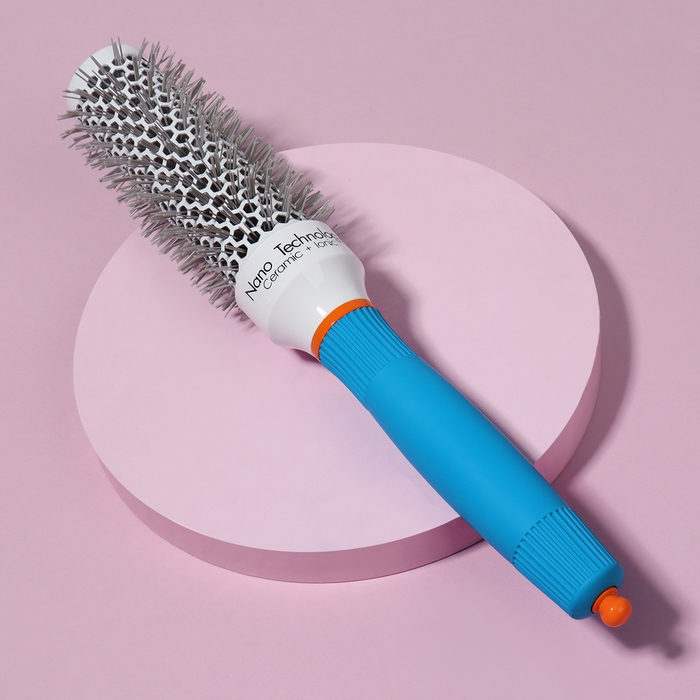 Брашинг подходит для ежедневной укладки. Позволяет создать объём, завить или выпрямить пряди. Нейлоновые щетинки эффективно снимают электризацию волос. За счёт керамико-ионного покрытия основания рабочая область брашинга быстро и равномерно нагревается. Вентилируемый корпус пропускает поток воздуха, тем самым позволяя быстрее добиться желаемого эффекта. Эргономичная прорезиненная ручка удобно лежит в руке. Специальный хвостик на конце ручки можно использовать для разделения прядей. Подходит для профессионального и домашнего использования.