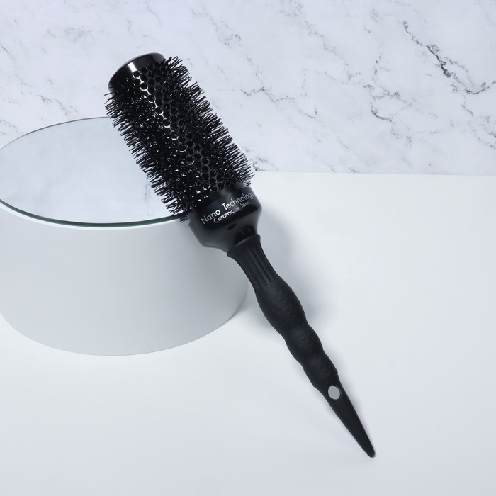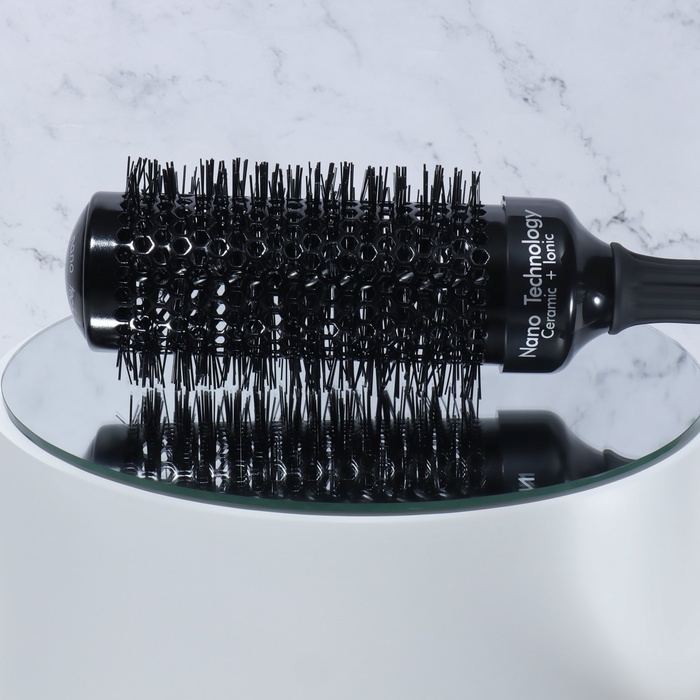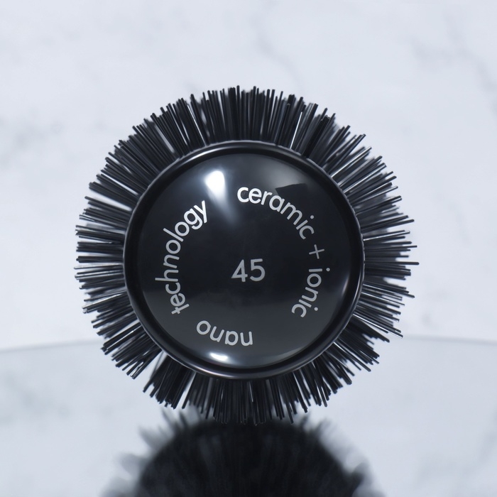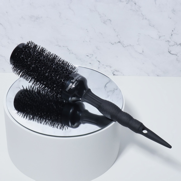 Брашинг подходит для ежедневной укладки. Позволяет создать объём, завить или выпрямить пряди. Нейлоновые щетинки эффективно снимают электризацию волос. За счёт керамико-ионного покрытия основания рабочая область брашинга быстро и равномерно нагревается. Вентилируемый корпус пропускает поток воздуха, тем самым позволяя быстрее добиться желаемого эффекта. Эргономичная прорезиненная ручка удобно лежит в руке. Специальный хвостик на конце ручки можно использовать для разделения прядей. Подходит для профессионального и домашнего использования.