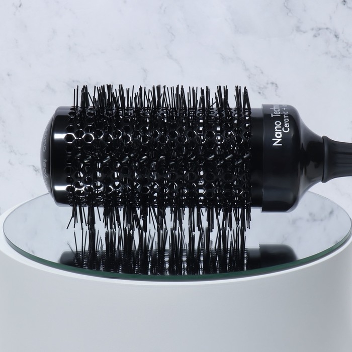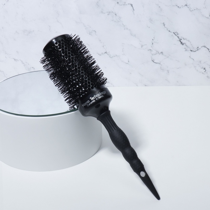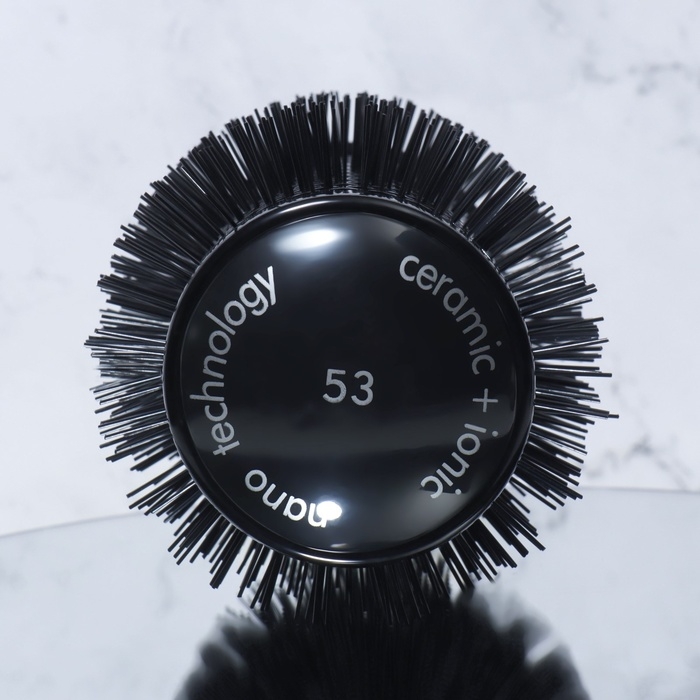 Нейлоновая щетина с керамико-ионным покрытием способствует лучшему захвату волос и обеспечивает антистатический эффект.