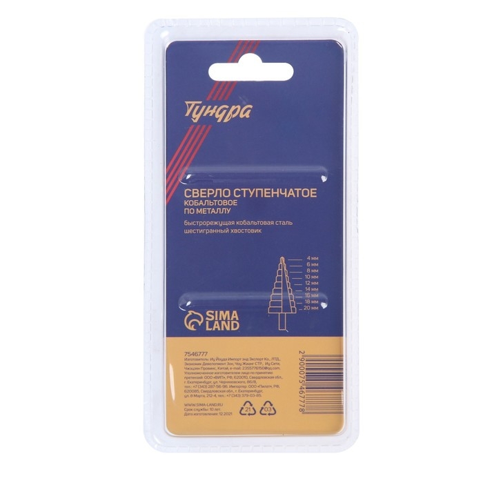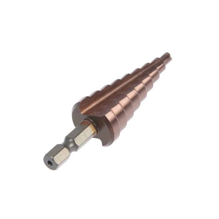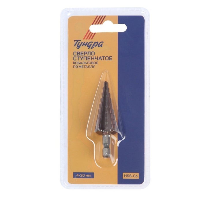 Сверло ступенчатое ТУНДРА, HSS-Co, шестигранный хвостовик, 4 - 20 мм